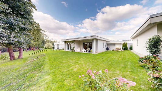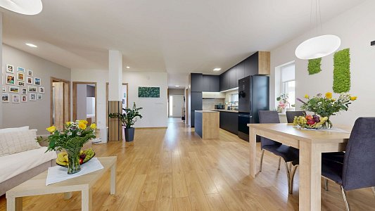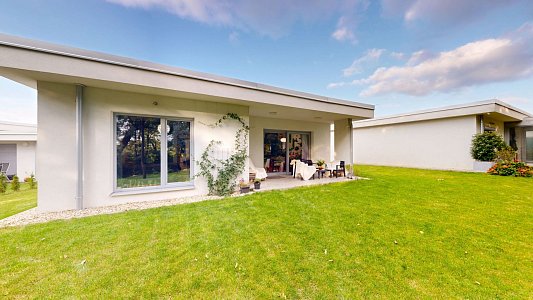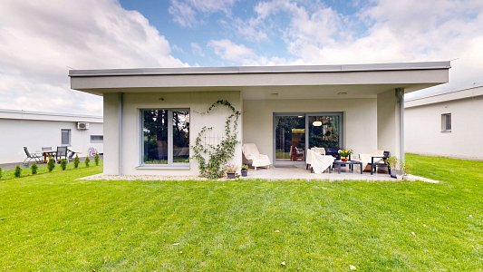 Ponúkame Vám exkluzívne na predaj KRÁSNY, slnečný, MODERNÝ a NOVÝ (5r.), TEHLOVÝ, PRIESTRANNÝ (spolu 147m2), 4 izbový Rodinný dom (114m2) + TERASA (6,4m2) + GARÁŽ (26,7m2), + 3 PARKOVACÍMI miestami pred domom, LAVIČKOU na osvetlenom priedomí, s VÝCHODOM z obývačky NA TERASU a na rovinatý 4,5 árovom pozemok s udržiavaným TRÁVNIKOM a s presahom do VEĽKEJ 5 árovej ZÁHRADY s pretekajúcim POTÔČIKOM vzadu, v PRÍMESTSKEJ časti, štvrti NOVOSTAVIEB, s dosahom MHD, Zimná ulica, Dulova Ves - VLČIE DOLY pri Prešove (5km od centra mesta).