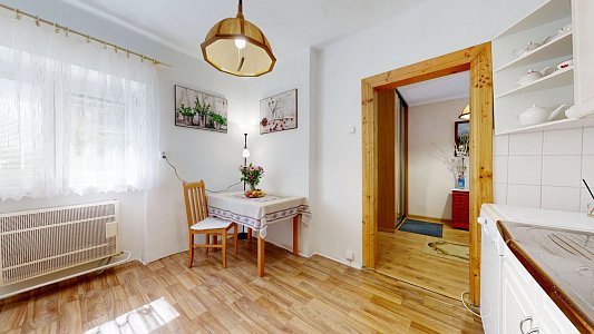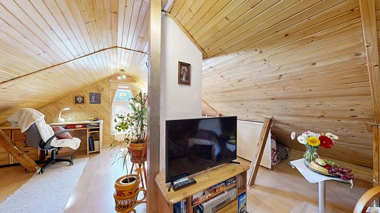 Ponúkame Vám exkluzívne na predaj ÚTULNÝ, čiastočne ZREKONŠTRUOVANÝ a VYBAVENÝ, Rodinný dom (110m2), s DENNOU ČASŤOU - obývacou izbou, detskou izbou (pracovňou), kuchyňou s jedálenským kútom a VEĽKOLEPÝM PODKROVÍM poskytujúcim priestor s úplným súkromím na oddych, spánok aj prácu, s miestom pre RODINNÉ GRILOVANIE s posedením na hojdačke a s KRÁSNOU ZÁHRADOU s LETNÝM DOMČEKOM a s ovocnými stromami a kríkmi, na 723m2 pozemku s výhľadmi na peknú okolitú prírodu Volovských vrchov, ideálnu pre PEŠIU aj CYKLO TURISTIKU a hubárčenie, neďaleko LYŽIARSKEHO strediska PLEJSY, na ulici Stará cesta, Krompachy.